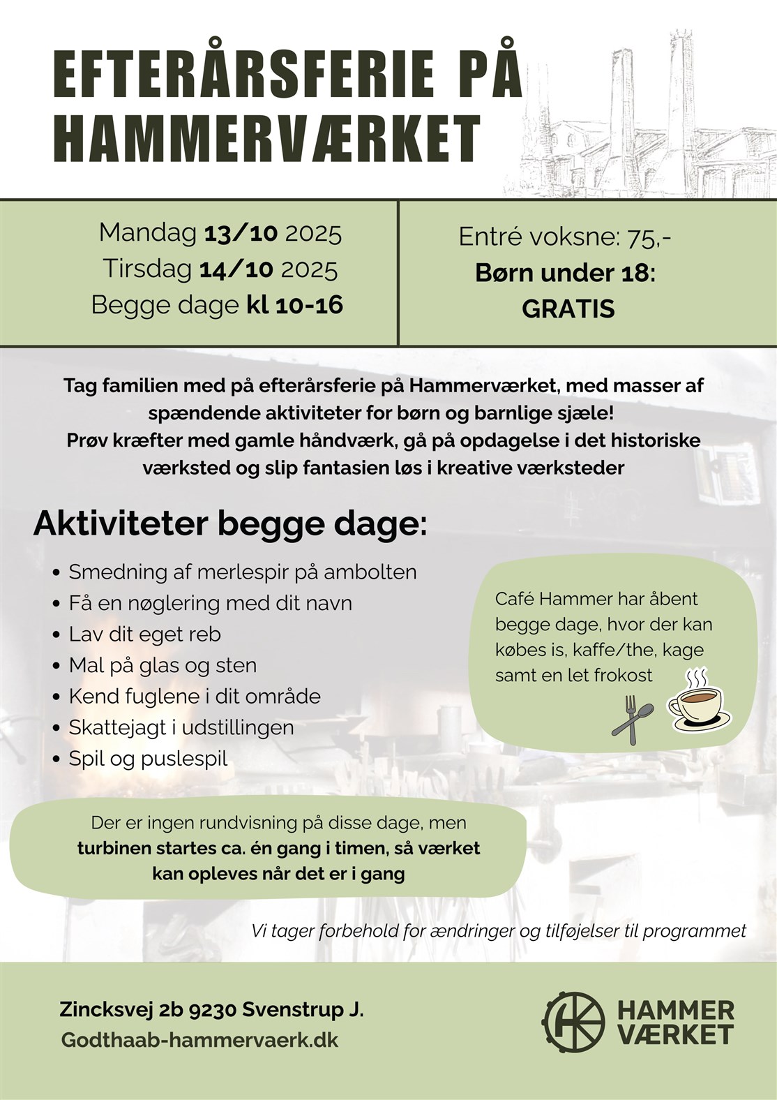 Musisk indslag i smedjen kl. 19,30 med Lars Lindbjerg, der optræder med sit repertoire af ørehængere af Kim Larsen, Johnny Cash, Credence, Johnny Madsen og mange flere.